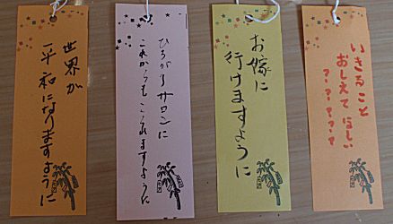 本日は七夕飾りをしました。願い事がかないますように!