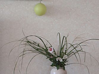 今日の花飾りは尾花と槿。本日は旧暦8月15日。仲秋の名月です。