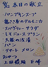 第7年度18回通算207回 2011年9月12日 献立
