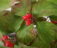 花飾りははなみずきの実、蜜柑も膨らみました。ほととぎす、と紫式部。