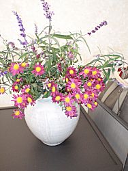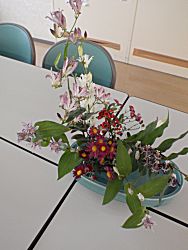 花飾りはブッシュセージ、菊、ほととぎ。