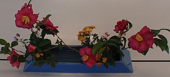 花飾りは今回も菊と山茶花。