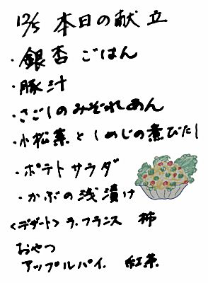 第7年度27回通算216回 2011年12月5日 献立
