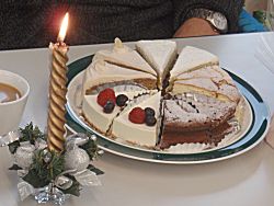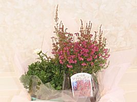 プレゼント用のお花。 花飾りは椿と青木の実。