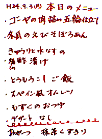 第8年度17回通算244回 2012年9月3日 献立