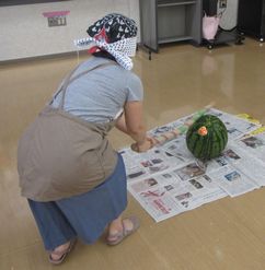 夏祭りでフラダンスのグループが見えました。 恒例の西瓜割りも行いました。