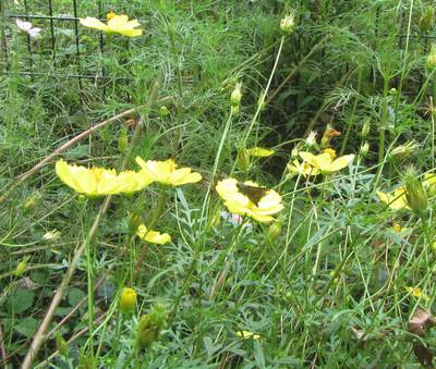 キバナコスモスはコスモスの仲間ですが、通常のコスモスの色違いでなく、花の形、葉の形が少し違う。