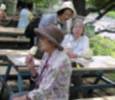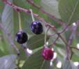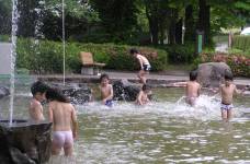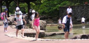 園内の枝垂桜の下。桜は実が黒くなっていました。