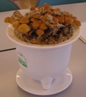 なめこの鉢物をお昼のおかずにしました。ブロッコリーも花飾りになりました。