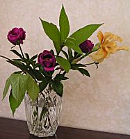 あやめと椿の若葉 牡丹(芍薬?)と二人静か