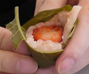 おやつ 桜餅の餡として苺が入っているのもありました。