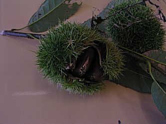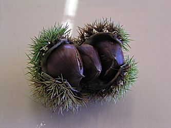 栗が実りました。広告の用紙で作った鍋敷を貰いました。
