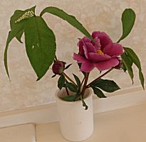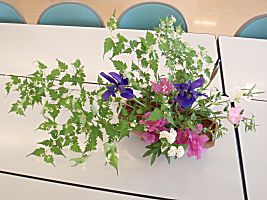 今日の花飾りは、こごめ空木、アヤメ、コデマリ、躑躅、牡丹(芍薬?)、二人静。