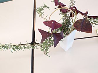 ローズマリーとオキザリス、不如帰と赤目柏の葉を飾りました。