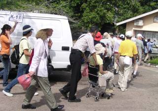 実際はバス1台に24名の客に対して2名のリーダーと現地人のガイドが付く程度で常時車椅子の人に配慮されているわけではありませんでした。このため「足に自信の無いため長くは歩きたくない」とか「階段が多いところは疲れるから避けたい」程度の人を対象にしているように見えました。