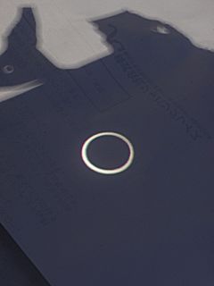 左の写真は金環食になったときのもので左上の小穴の影も金環食になっています。